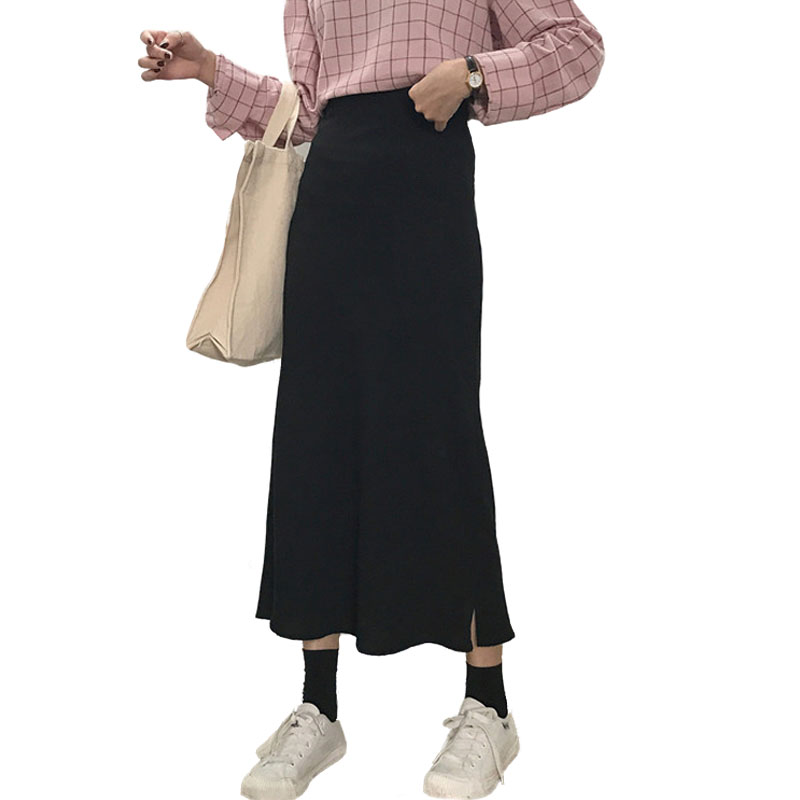 / 秋裝女裝韓版高腰百搭修身雪紡半身裙中長款包臀裙顯瘦a字裙長裙