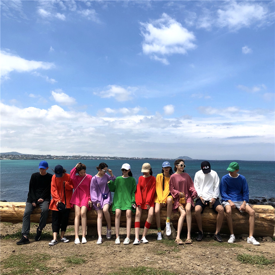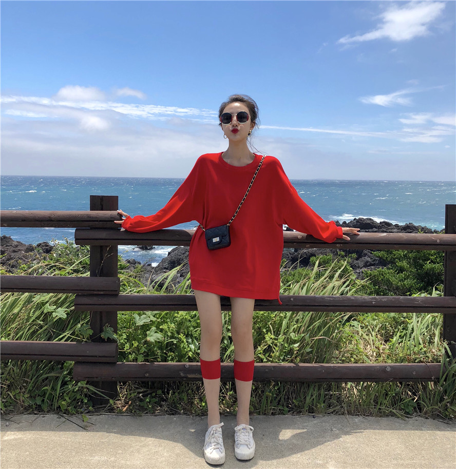 / 復古韓國chic風百搭寬松薄款長袖圓領T恤衛衣多色秋裝女2018新款