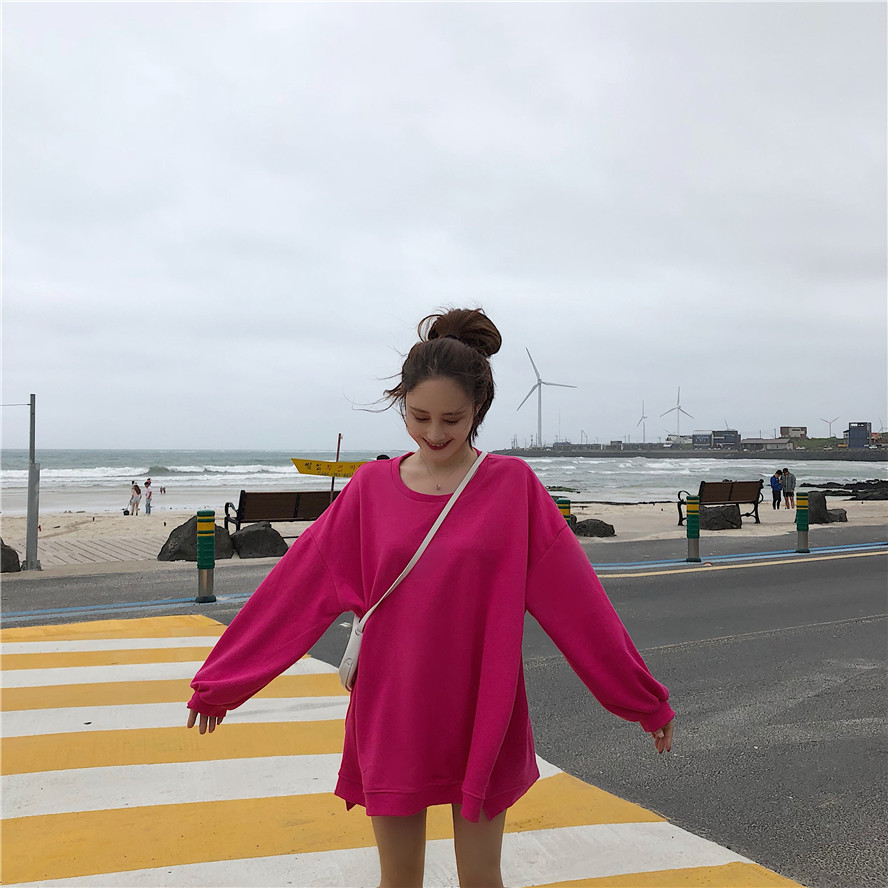 復古韓國chic風百搭寬松薄款長袖圓領T恤衛衣多色秋裝女2018新款