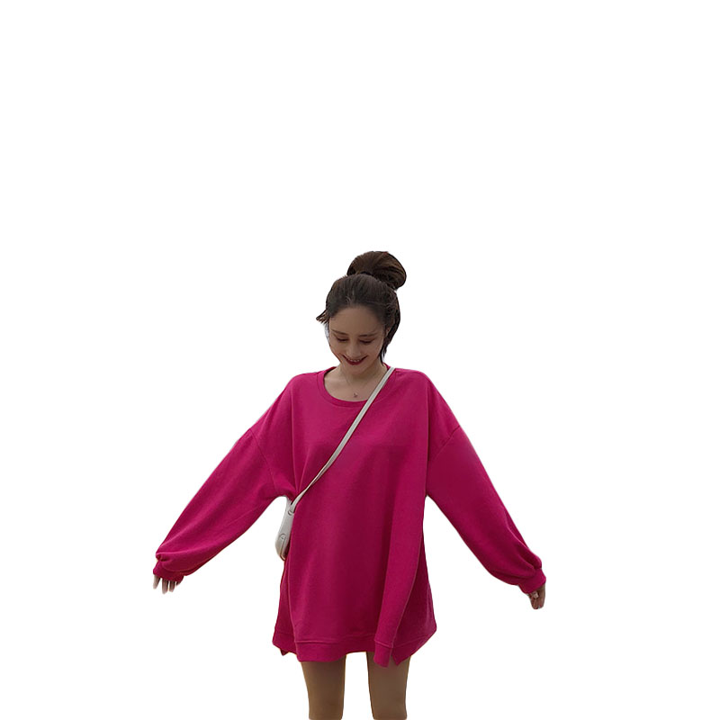 衛衣2018新款女長袖韓版寬松顯瘦oversize印花半高領慵懶長款裙子