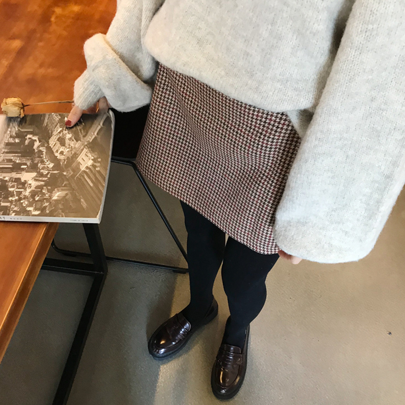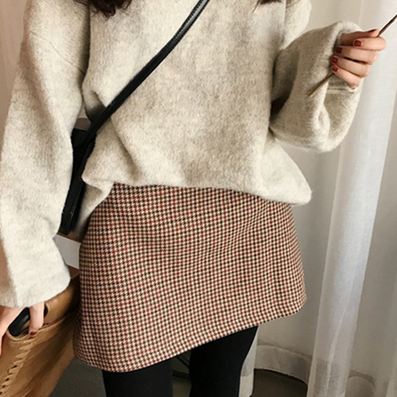 氣質chic千鳥格半身裙女秋冬裝2018新款韓版高腰顯瘦A字裙短裙子