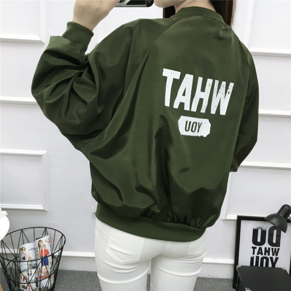 2017新款韓版休閑寬松夾克潮字母印花數字原宿bf風學生短款外套女