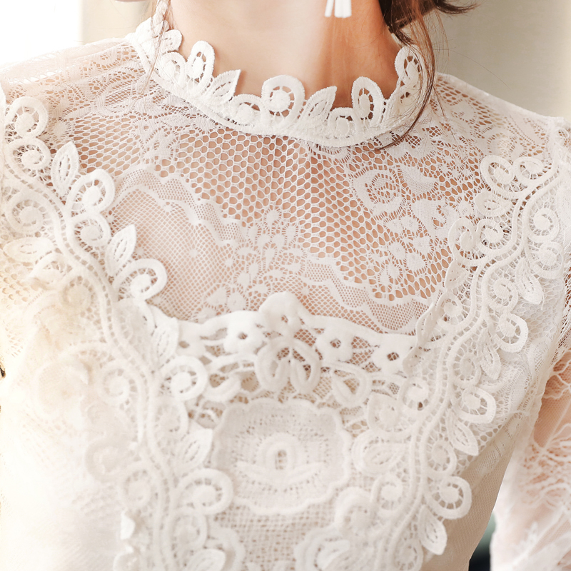 / 淑女氣質2018秋季新款百搭修身顯瘦蕾絲連衣裙圓領時尚長款連衣裙