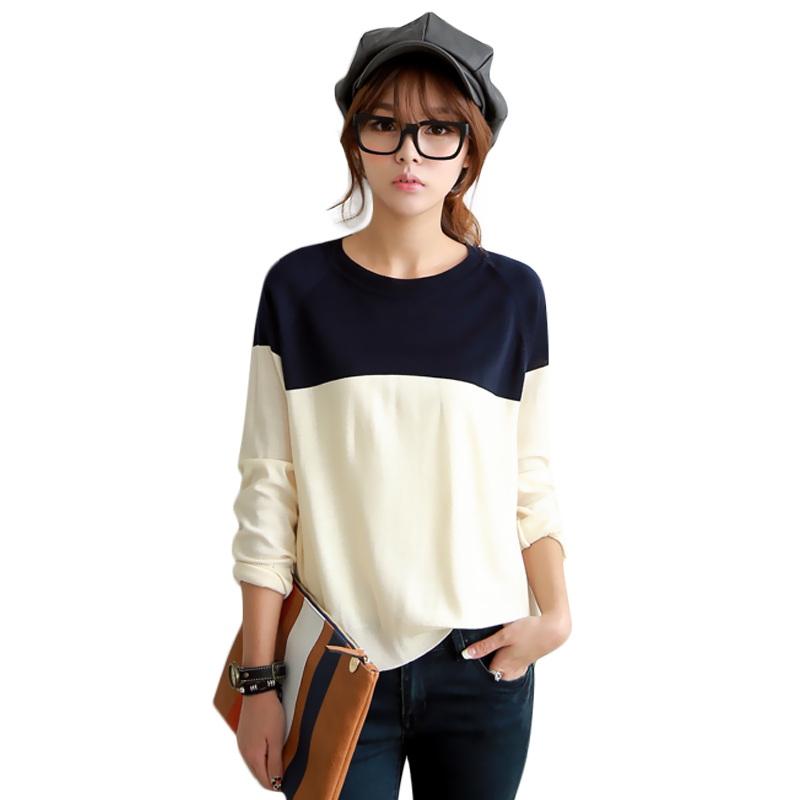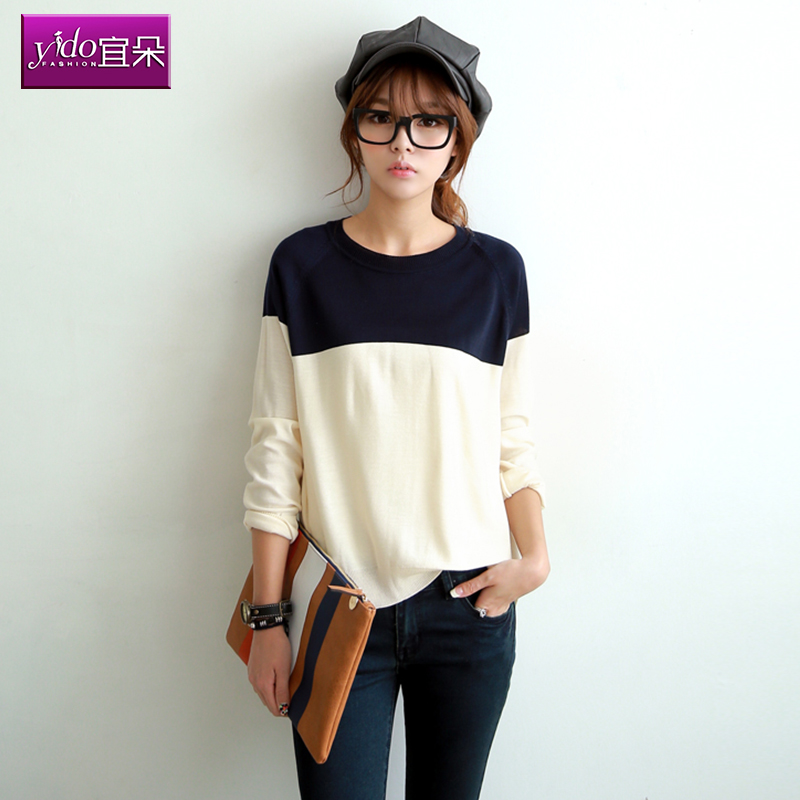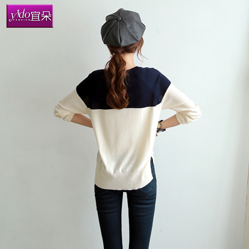 / 春季新款針織毛衣女撞色套頭學院風短款寬松圓領針織衫女毛衣