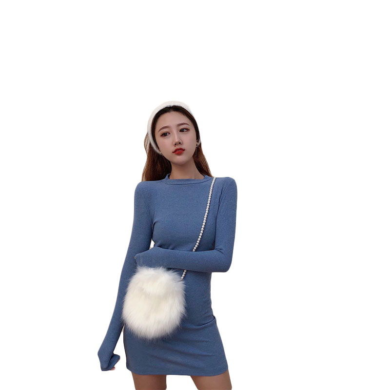 秋裝女2018新款圓領修身顯瘦套頭長袖中長款針織連衣裙包臀打底裙