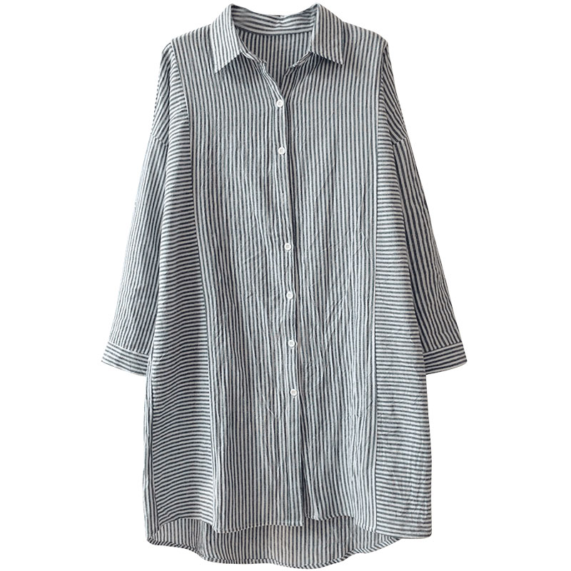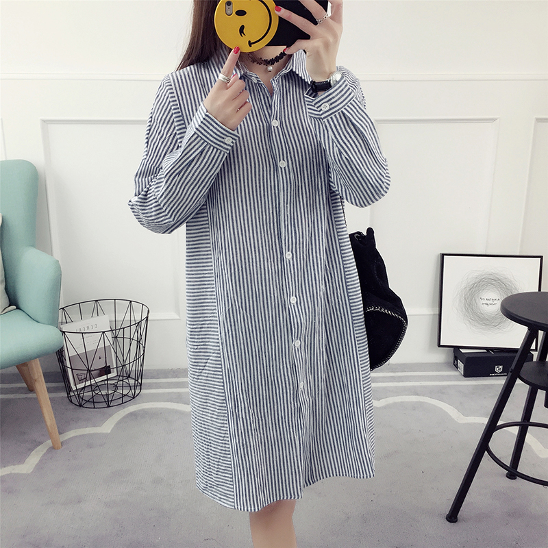 / 豎條紋襯衫女長袖寬松韓版中長款春裝新款百搭學生襯衣學院風