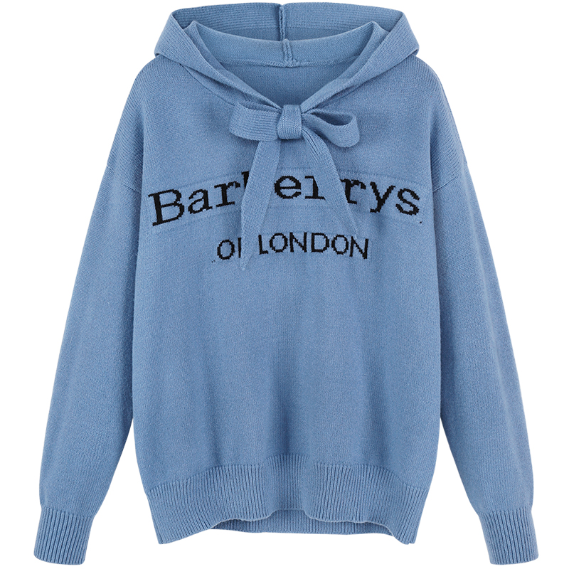 MG小象冬季連帽毛衣女裝新款蝴蝶結套頭上衣寬松韓版學生針織衫潮