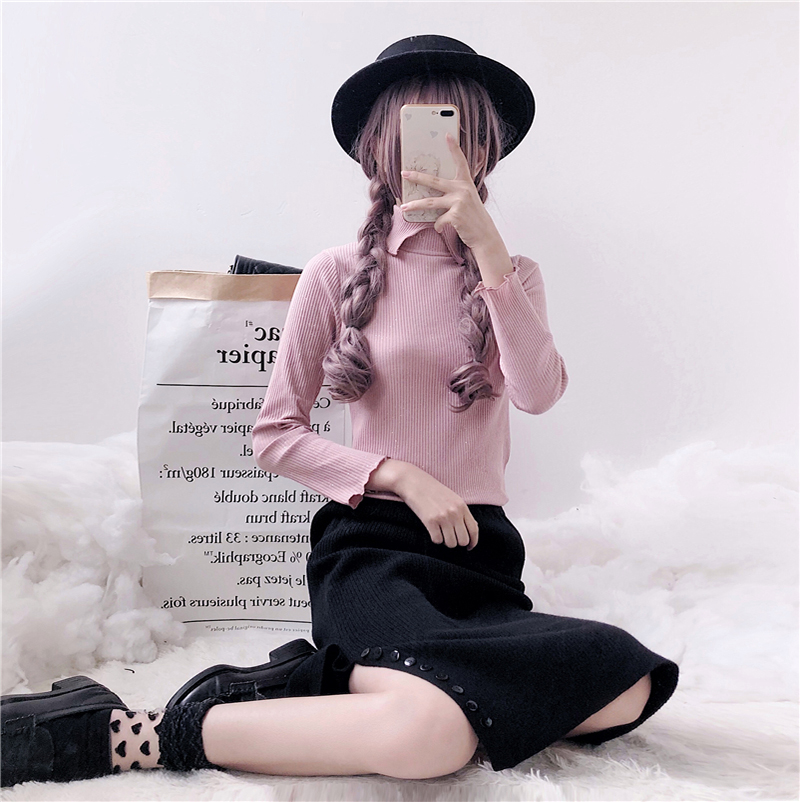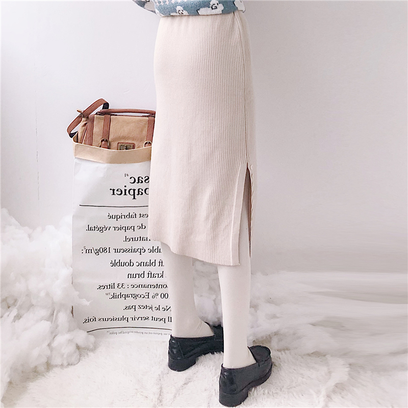 / 秋裝女2018新款韓版黑色顯瘦中長款a字裙氣質高腰針織開叉半身裙