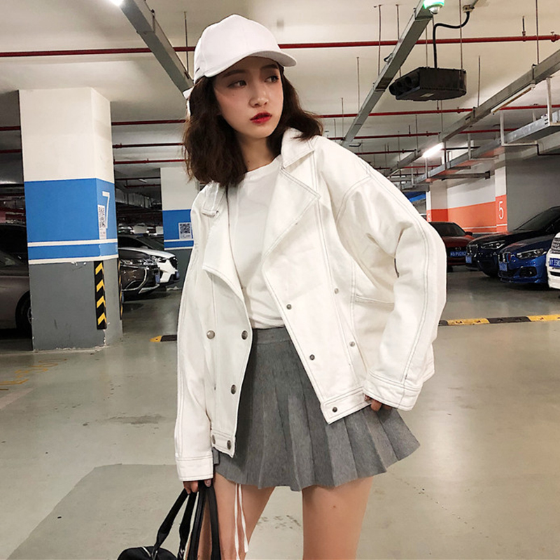 / 秋季韓版牛仔短外套2018新款女裝學生休閑寬松純色長袖夾克上衣潮
