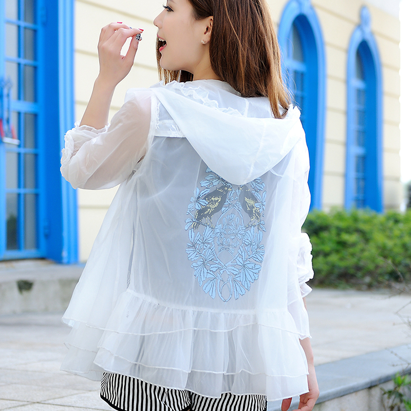 / 防曬衣女夏季百搭短款薄款韓版透氣寬松大碼外套沙灘服印花皮膚衣