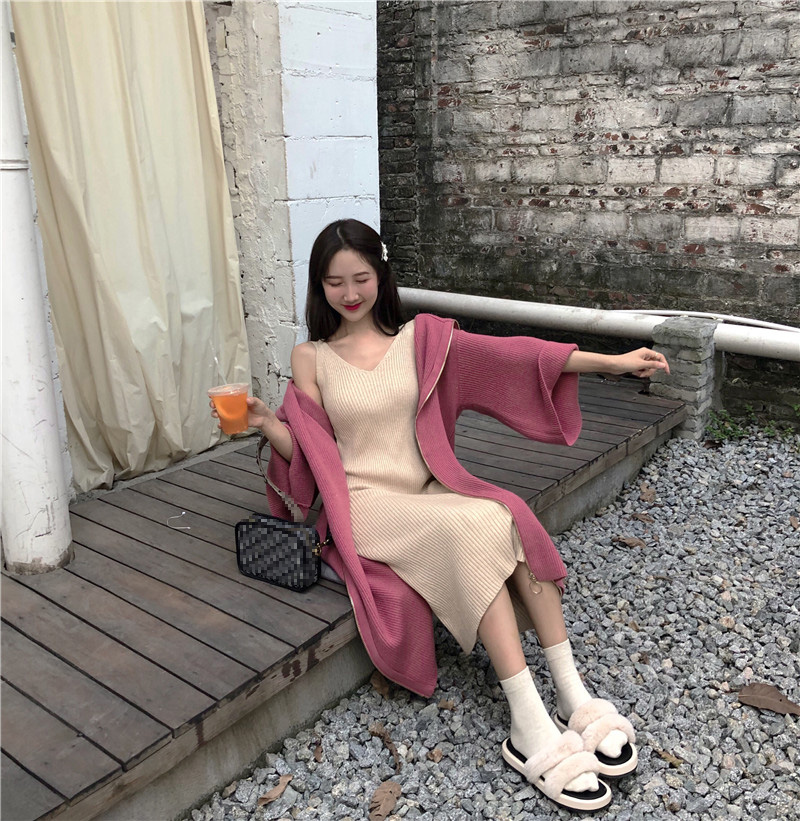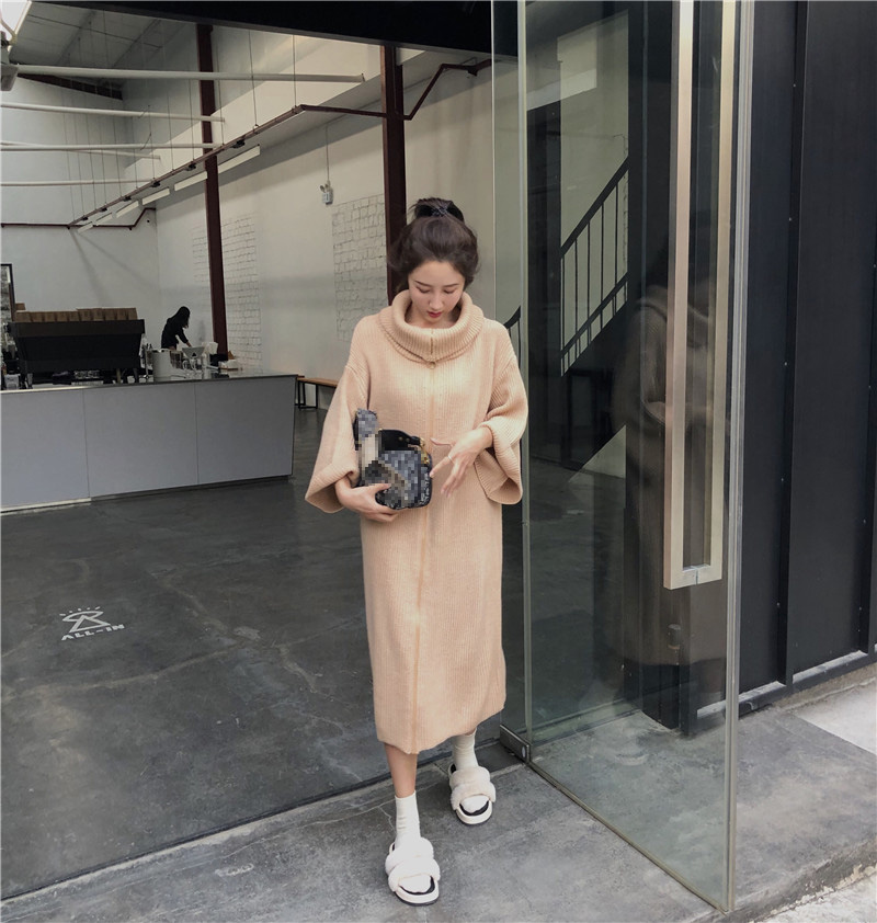 針織開衫外套過膝長款拉鏈高領V領連衣裙晚晚風時尚套裝兩件套女