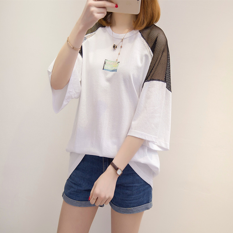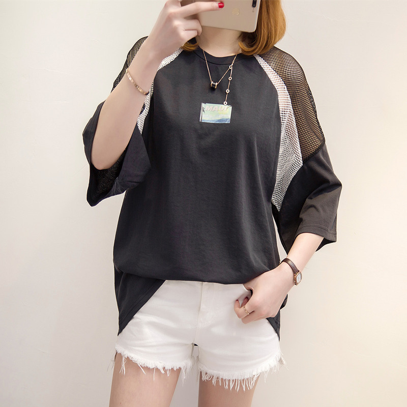 / 短袖t恤女新款春裝中長袖寬松大碼打底體恤衫百搭上衣女潮