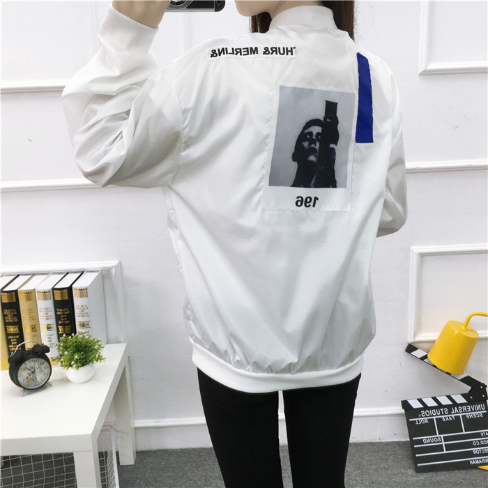 女裝2017夏季韓版bf風連帽印花短外套寬松百搭秋季學生薄款開衫潮