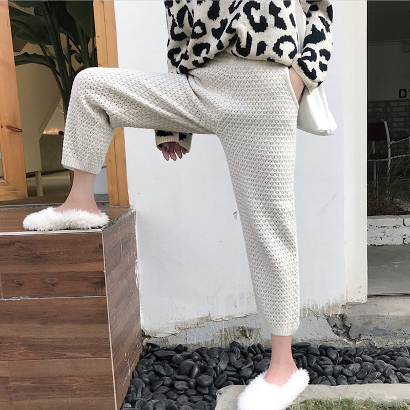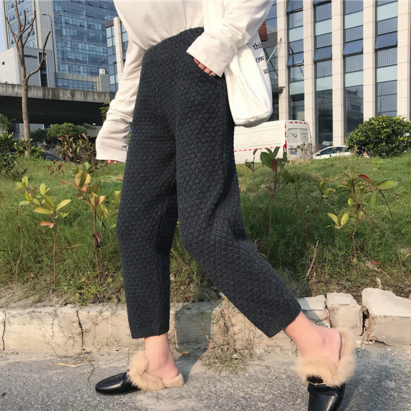 / 秋裝女2018新款復古高腰寬松針織休閑褲時尚黑色哈倫褲八分褲子潮