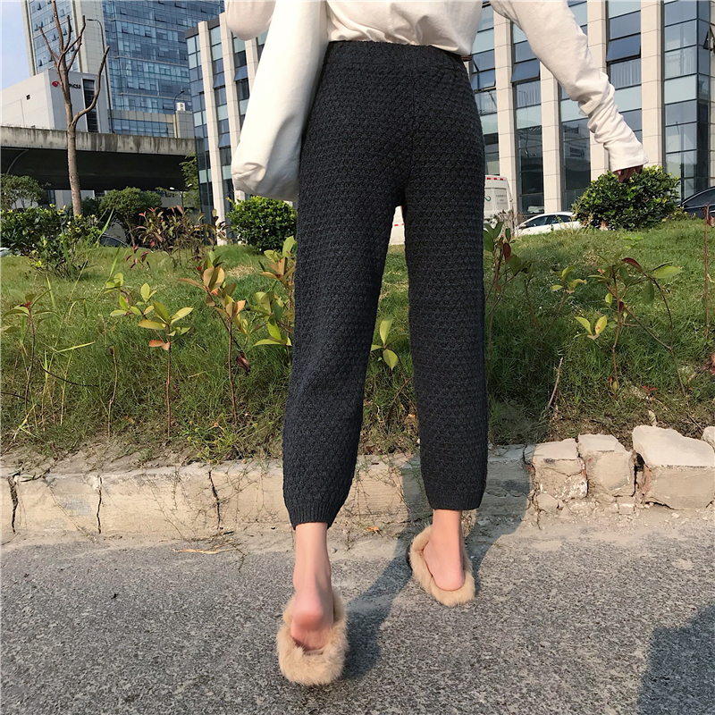 秋裝女2018新款復古高腰寬松針織休閑褲時尚黑色哈倫褲八分褲子潮