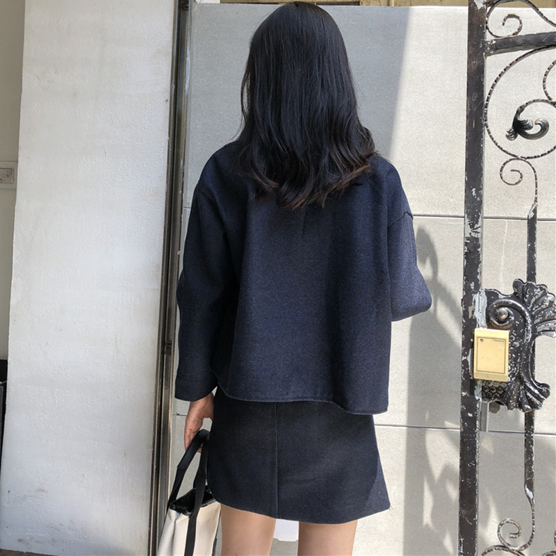 御姐套裝女秋冬新款寬松長袖短外套高腰顯瘦短裙子純色休閑直筒褲