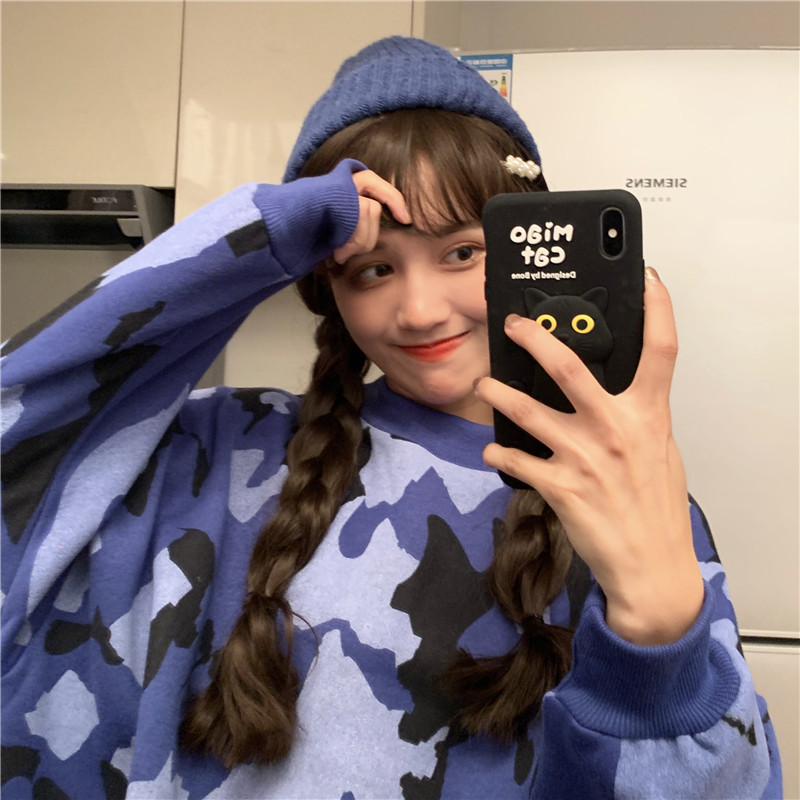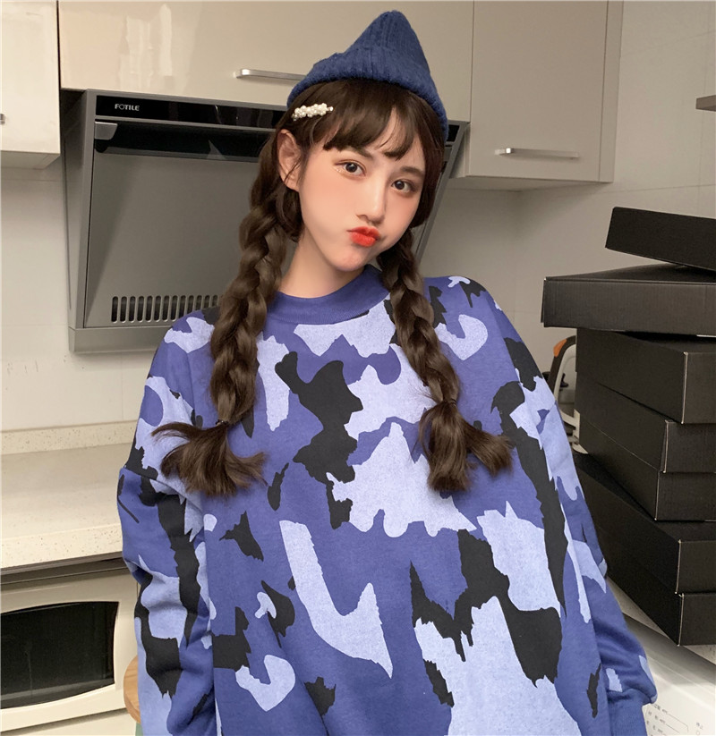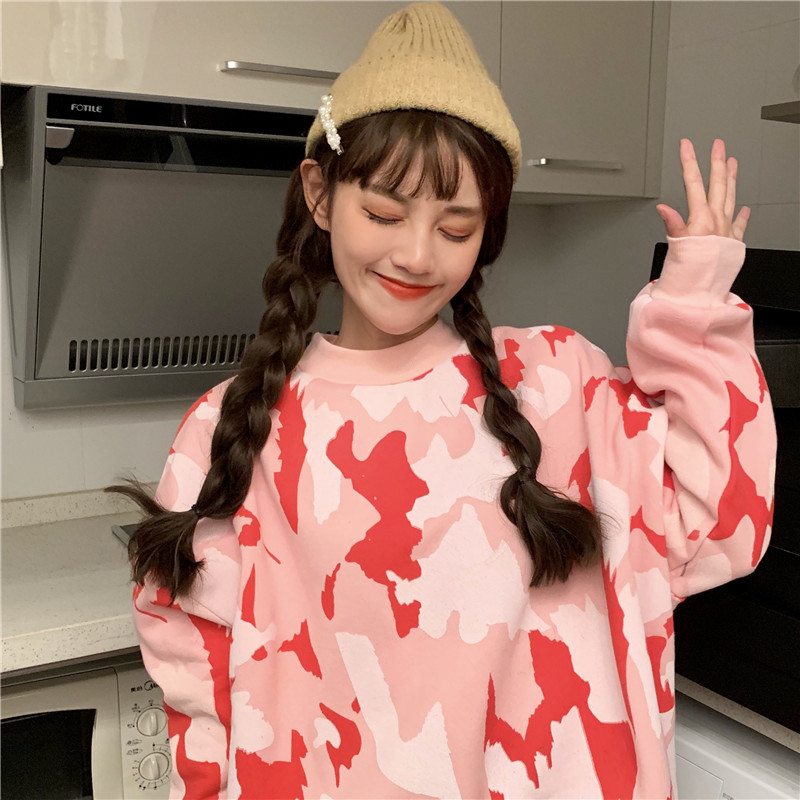 慵懶風涂鴉迷彩衛衣女秋冬裝2018新款韓版百搭學生寬松長袖外套潮