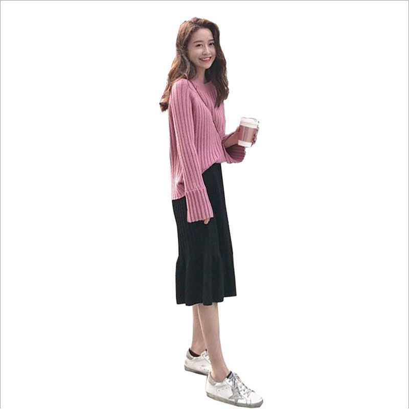 / 秋冬季時尚衣服酷潮港味復古套裝寬松社會女神網紅毛衣裙子兩件套
