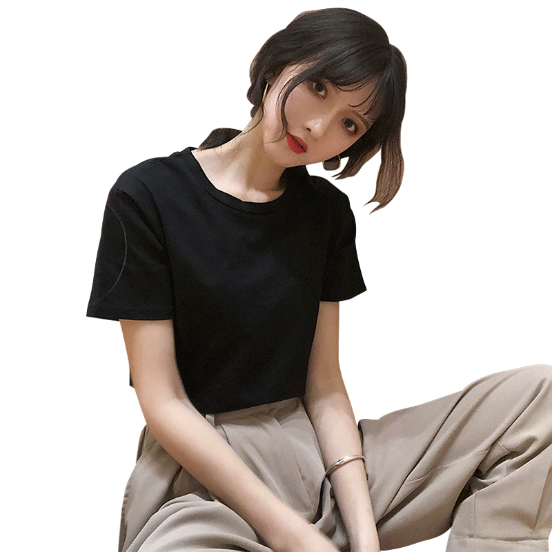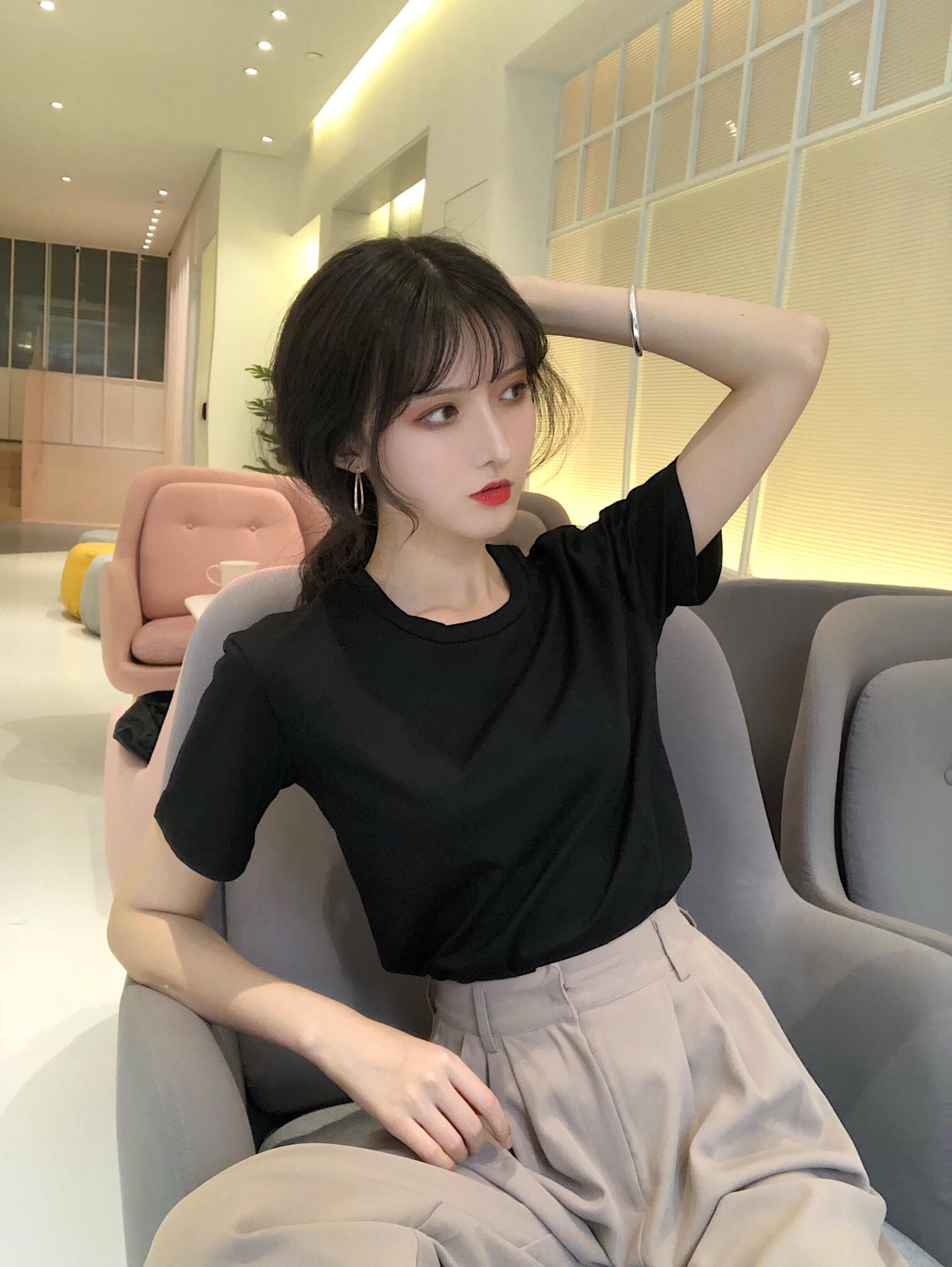 純色圓領時尚小清新學生復古chic風新款韓版百搭短袖T恤上衣潮女