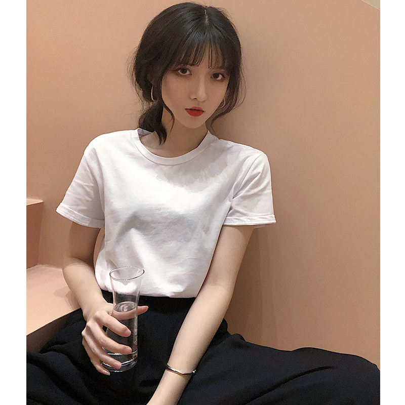 / 純色圓領時尚小清新學生復古chic風新款韓版百搭短袖T恤上衣潮女