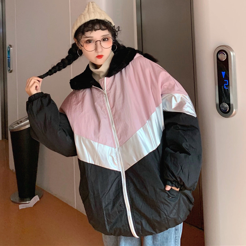 / 韓版拼色毛領連帽棉襖女2018冬裝新款學生寬松加厚外套時尚棉衣服