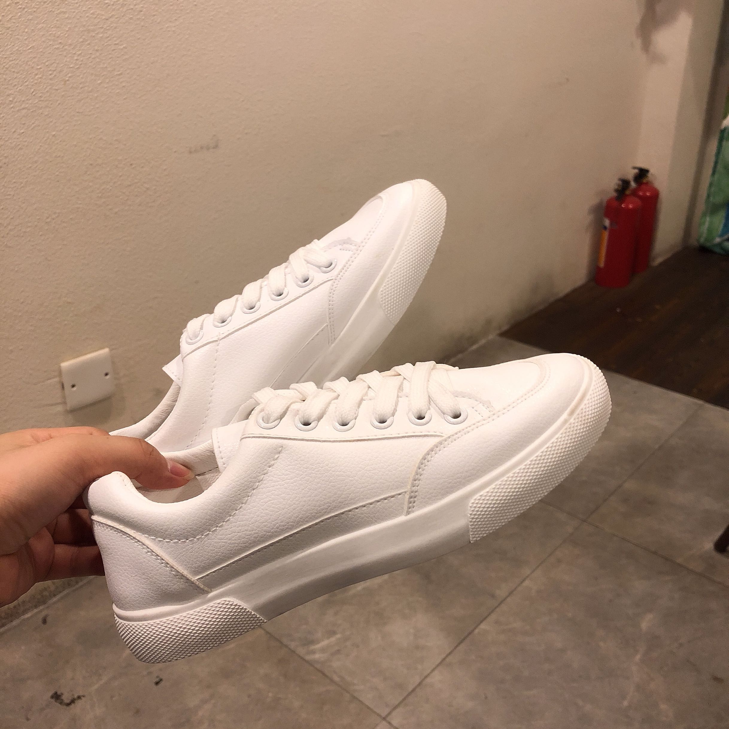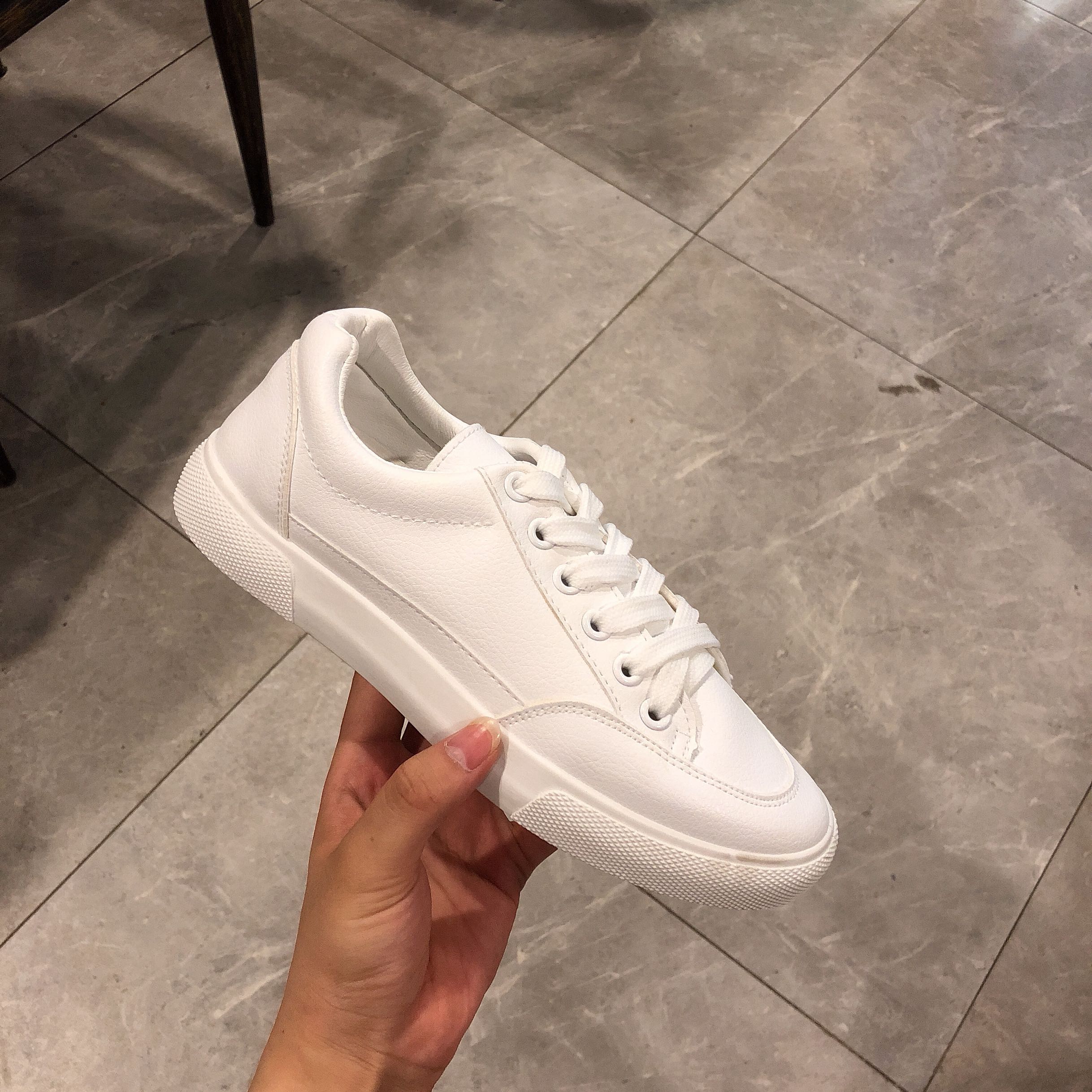 / 學院風小清新板鞋系帶平底淺口懶人鞋韓版學生小白鞋透氣運動鞋潮