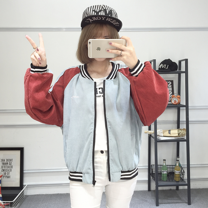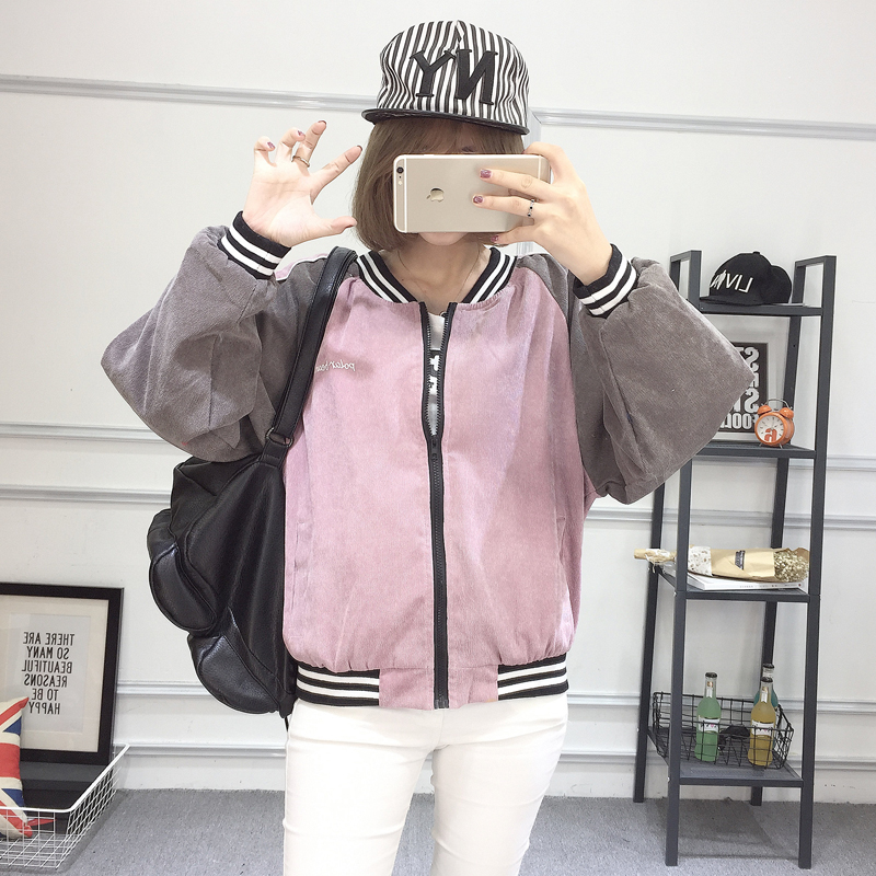/ 春裝新款韓版原宿風BF寬松學生字母拼色棒球服燈芯絨外套女夾克潮