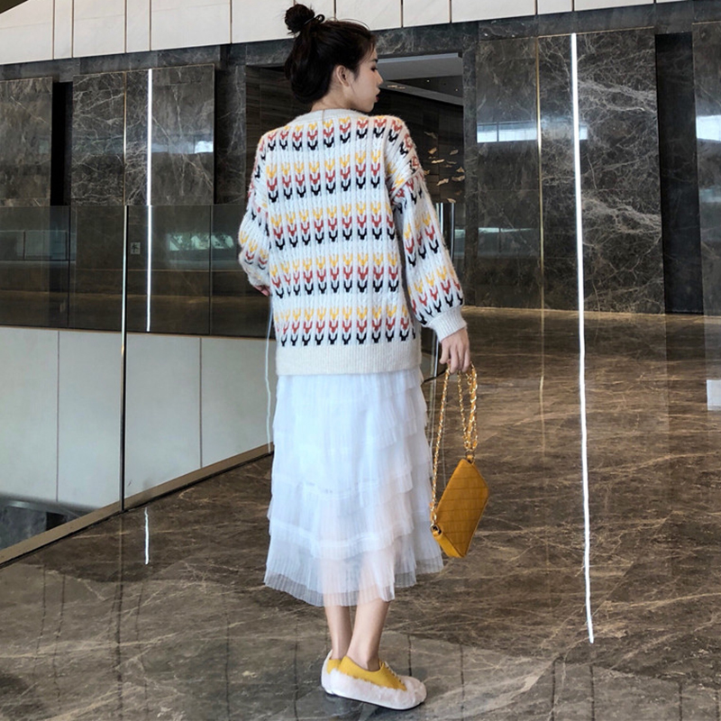 chic慵懶風花色麻花毛衣外套女秋冬裝2018新款韓版寬松長袖針織衫