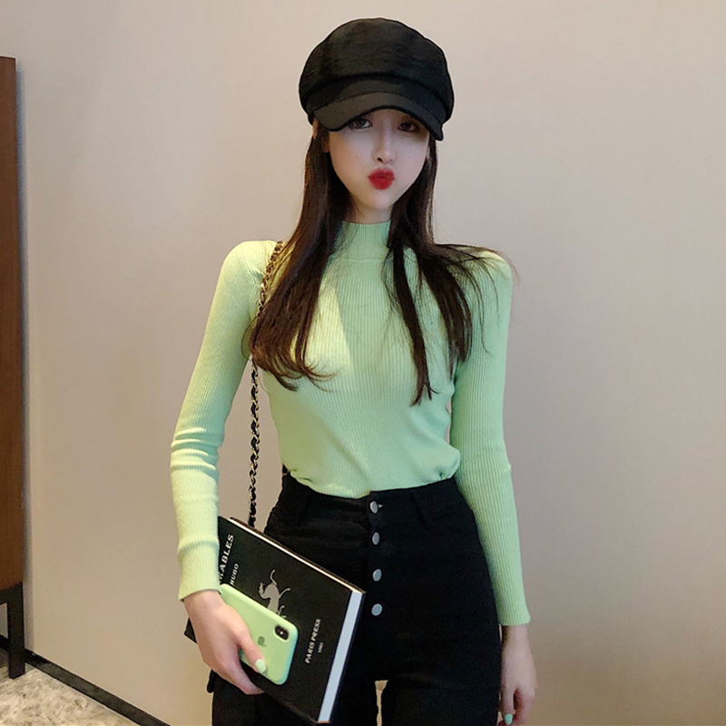 糖果色緊身打底衫秋冬女裝2018新款韓版修身半高領長袖針織上衣女