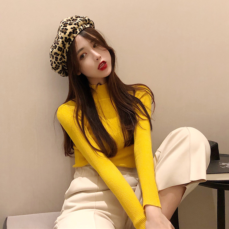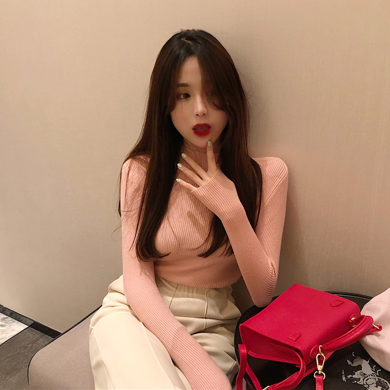 / 糖果色緊身打底衫秋冬女裝2018新款韓版修身半高領長袖針織上衣女
