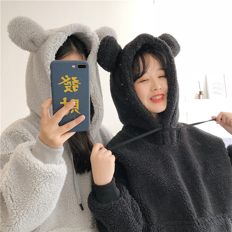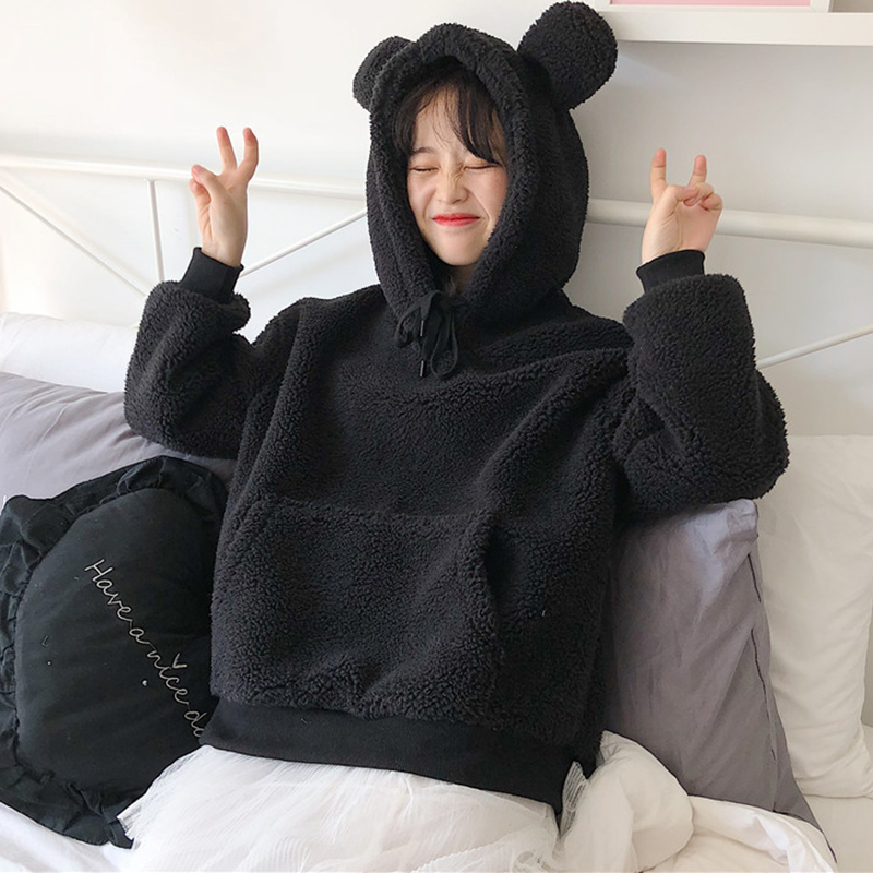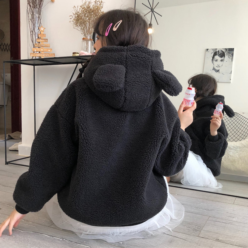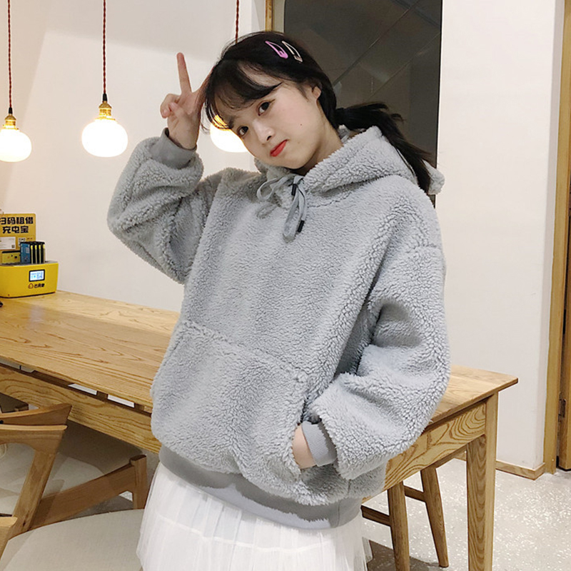 / 可愛少女連帽衛衣2018冬裝新款韓版學生寬松加厚羊羔毛上衣外套潮