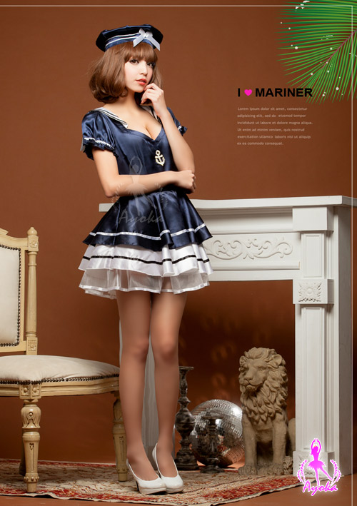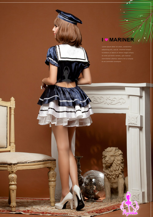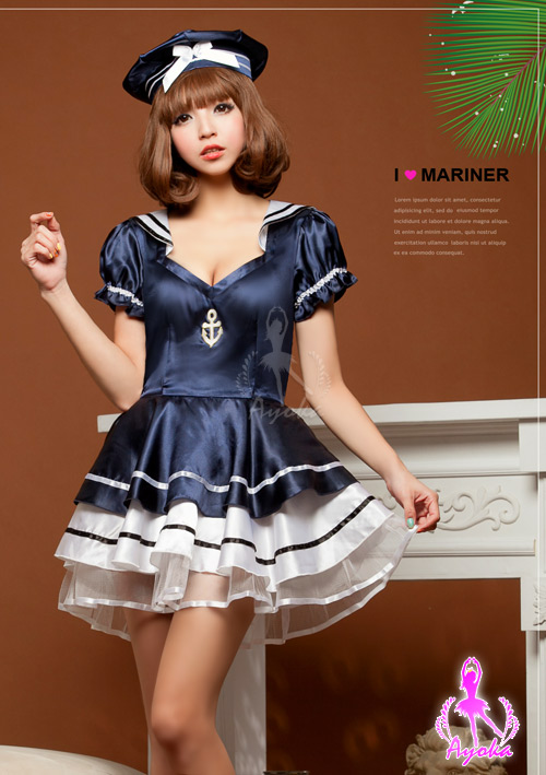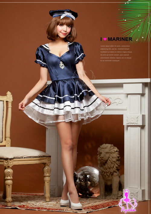 此款海軍風連身小洋裝,以公主袖、澎澎裙等元素 |