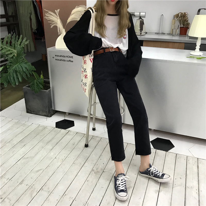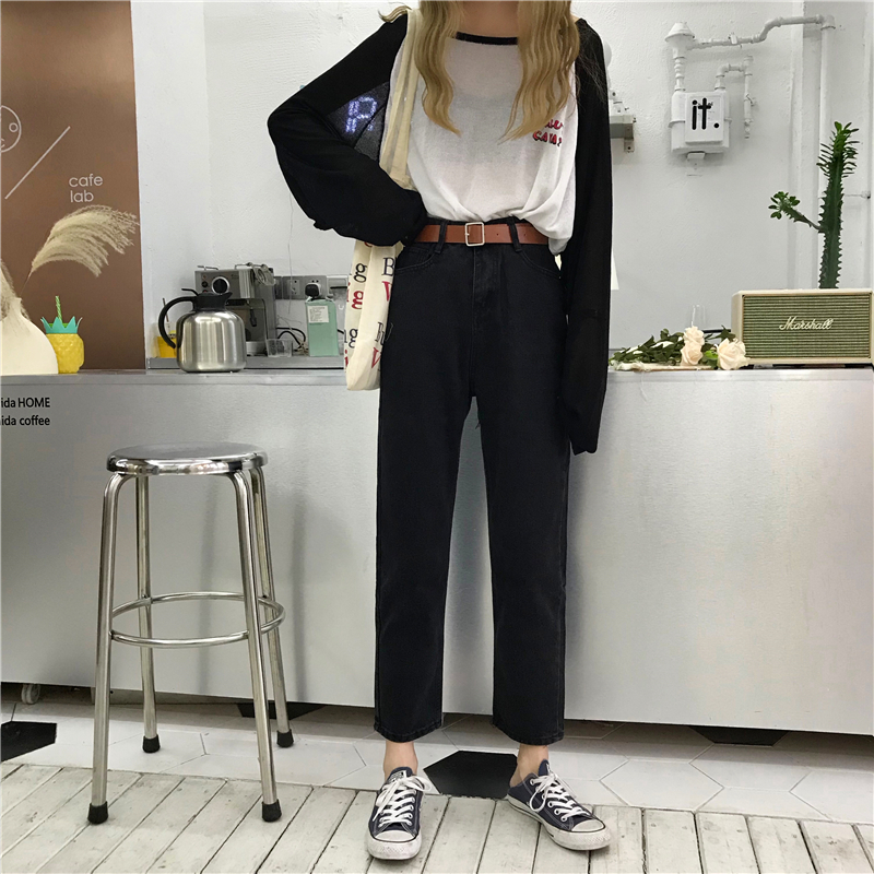 / 秋季女裝韓版chic寬松復古百搭牛仔褲高腰顯瘦九分褲直筒褲闊腿褲