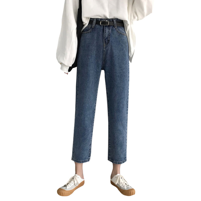 秋季女裝韓版chic寬松復古百搭牛仔褲高腰顯瘦九分褲直筒褲闊腿褲