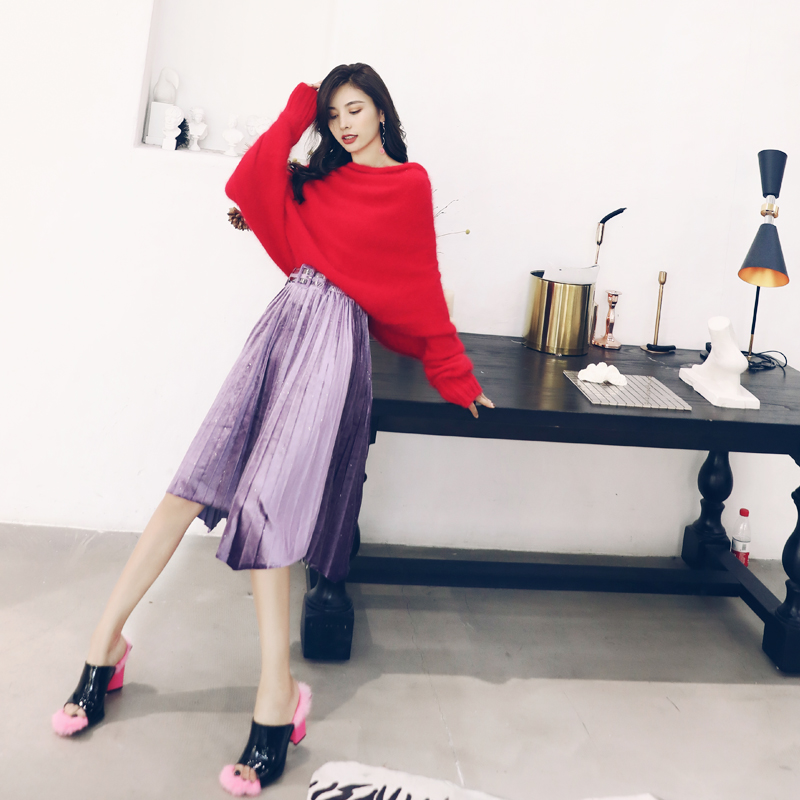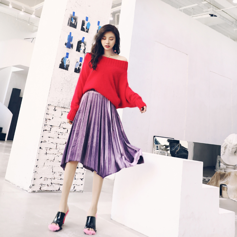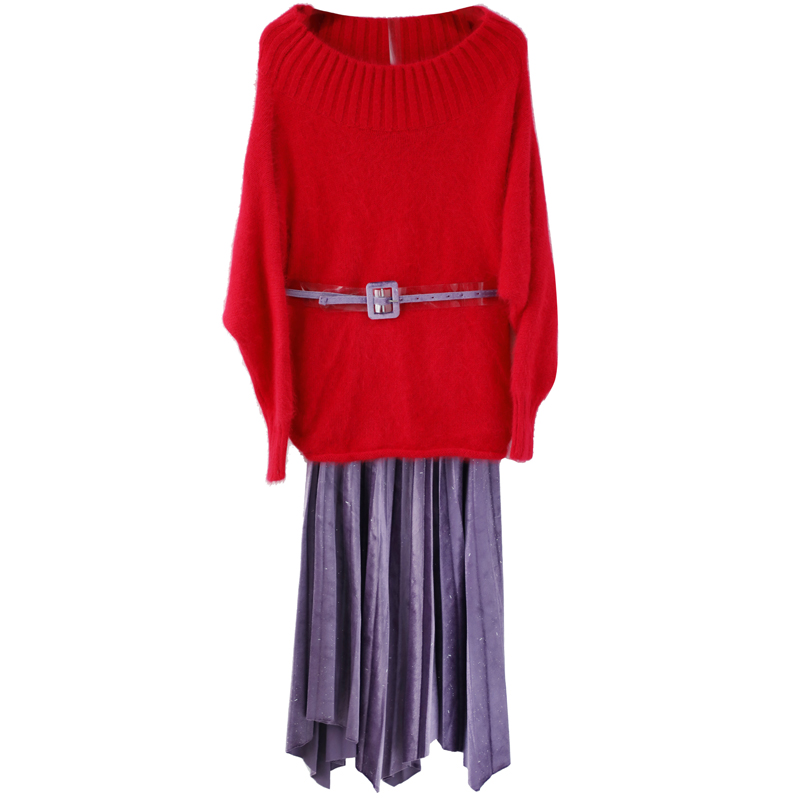 女神范2018秋冬季新款韓版網紅港味一字肩毛衣絲絨裙子兩件套裝潮