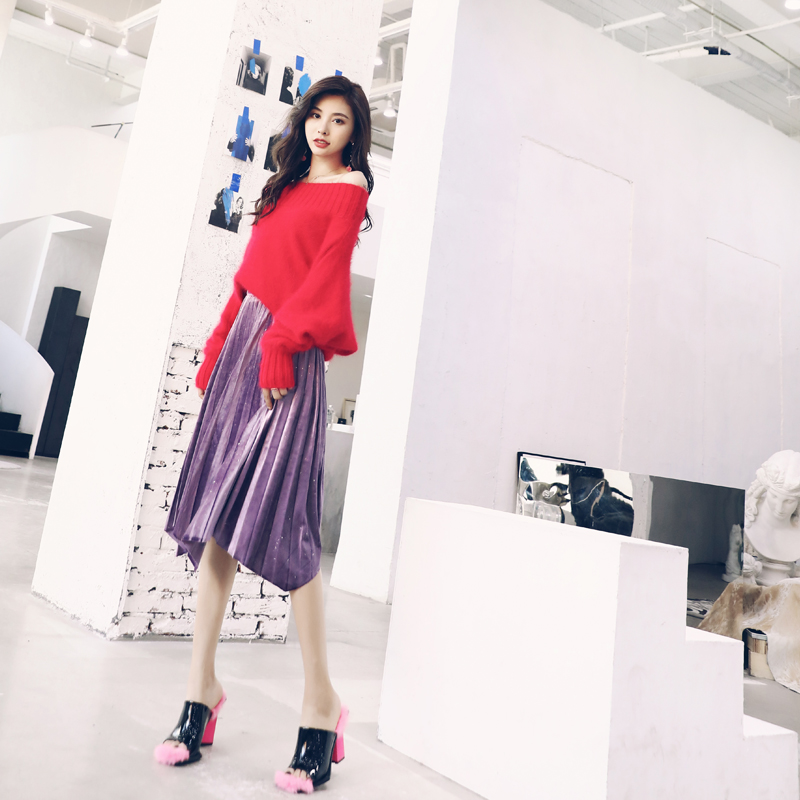 / 女神范2018秋冬季新款韓版網紅港味一字肩毛衣絲絨裙子兩件套裝潮