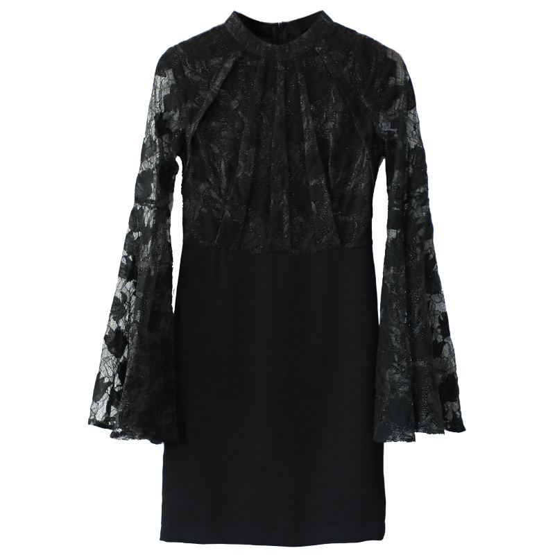 / 名媛氣質2018早秋新款黑色赫本連衣裙蕾絲拼接包臀禮服小黑裙