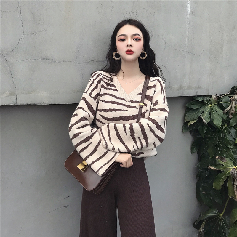 / 慵懶風毛衣女韓版2018新款初秋chic寬松百搭顯氣質V領套頭針織衫