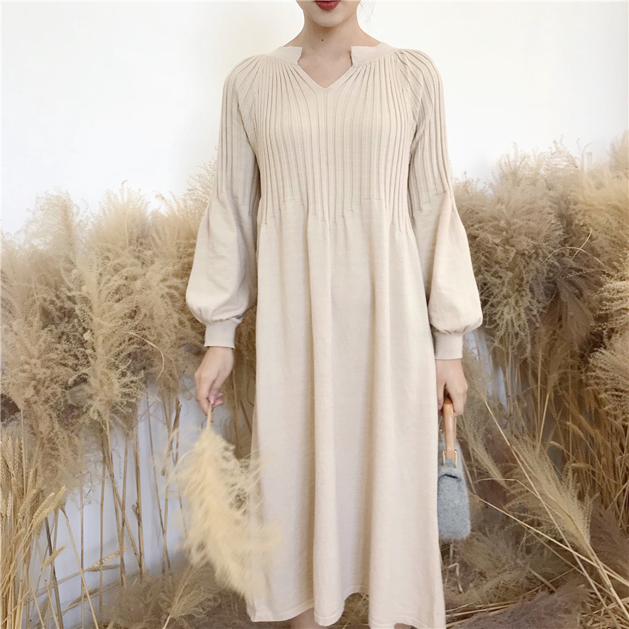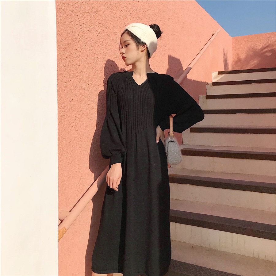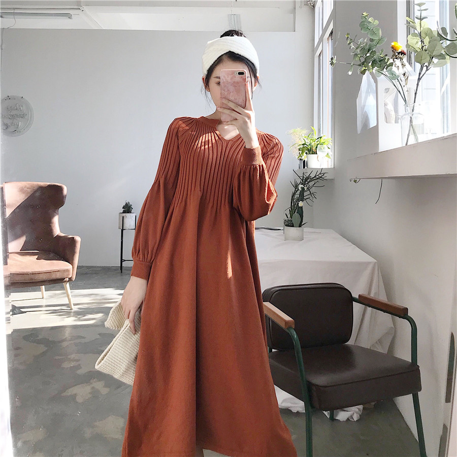 秋裝女2018新款復古韓版氣質長袖裙子顯瘦彈力寬松針織修身連衣裙
