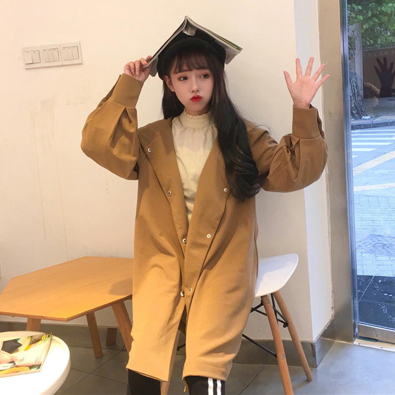 / 休閑連帽風衣外套開衫秋裝女2018新款韓版寬松收腰黑色中長款上衣