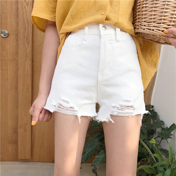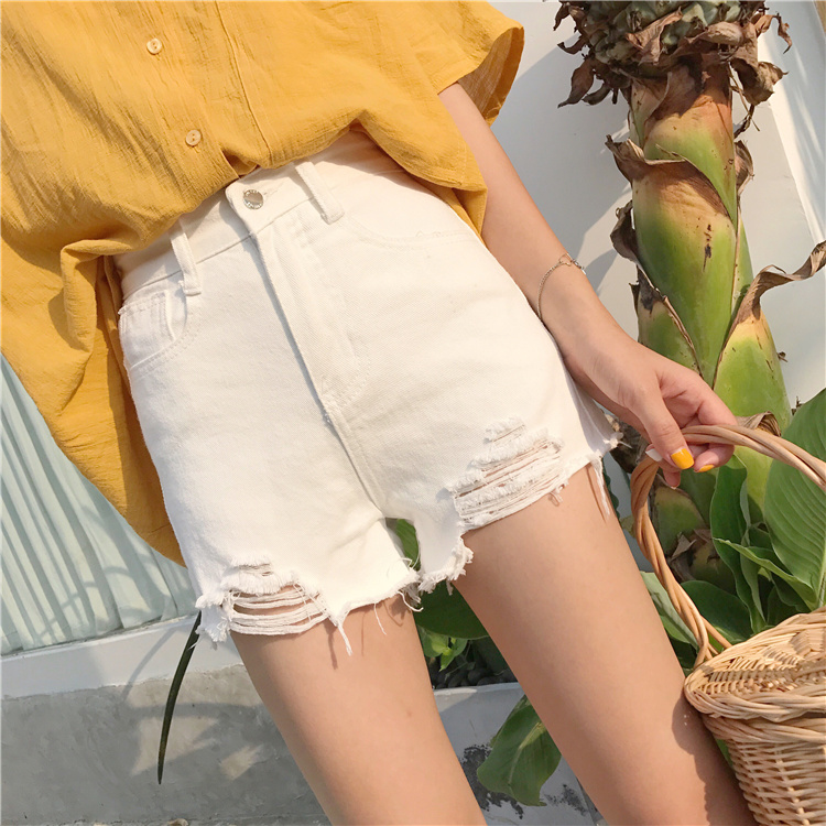 / 春夏韓版高腰寬松顯瘦百搭做舊破洞牛仔褲闊腿褲直筒褲學生短褲女