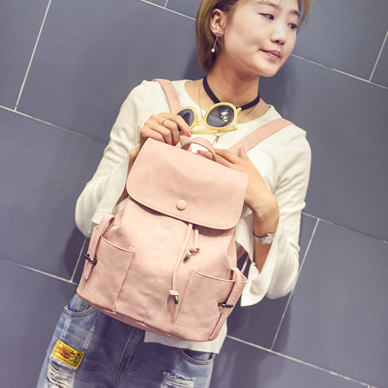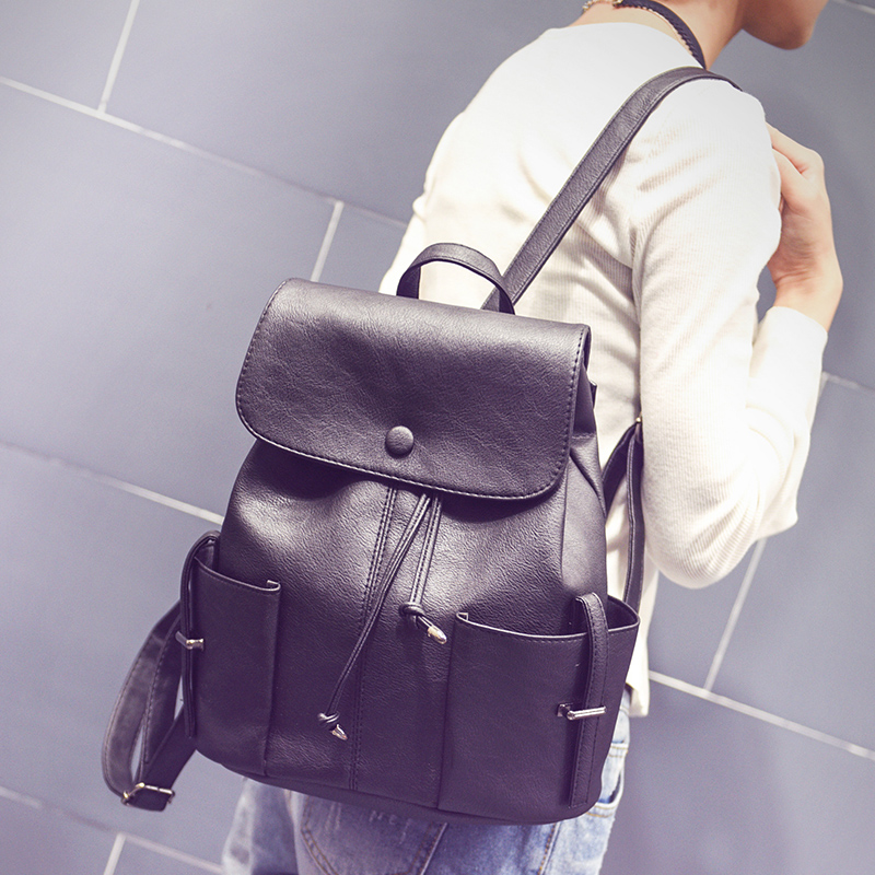 新款軟皮雙肩包日韓版潮女包雙兜旅行背包休閑學院風學生書包