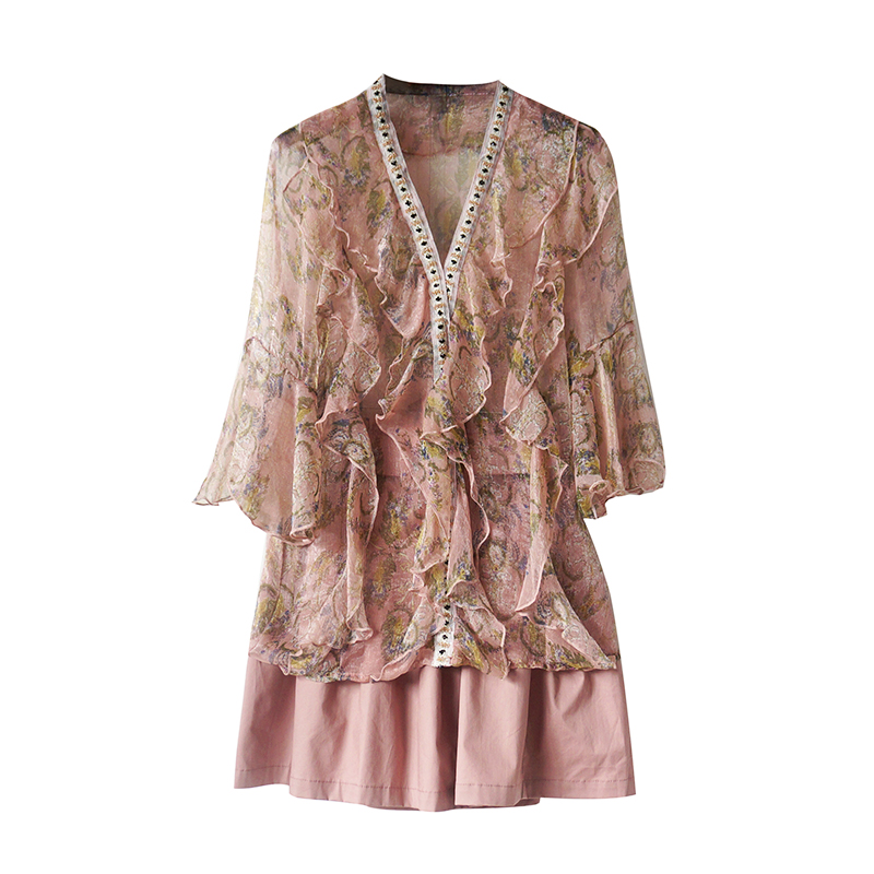 名媛氣質2018夏季小碎花印花雪紡衫上衣高腰闊腿褲短褲兩件套裝女