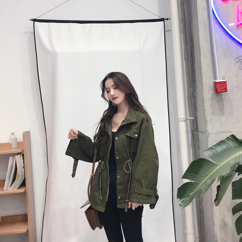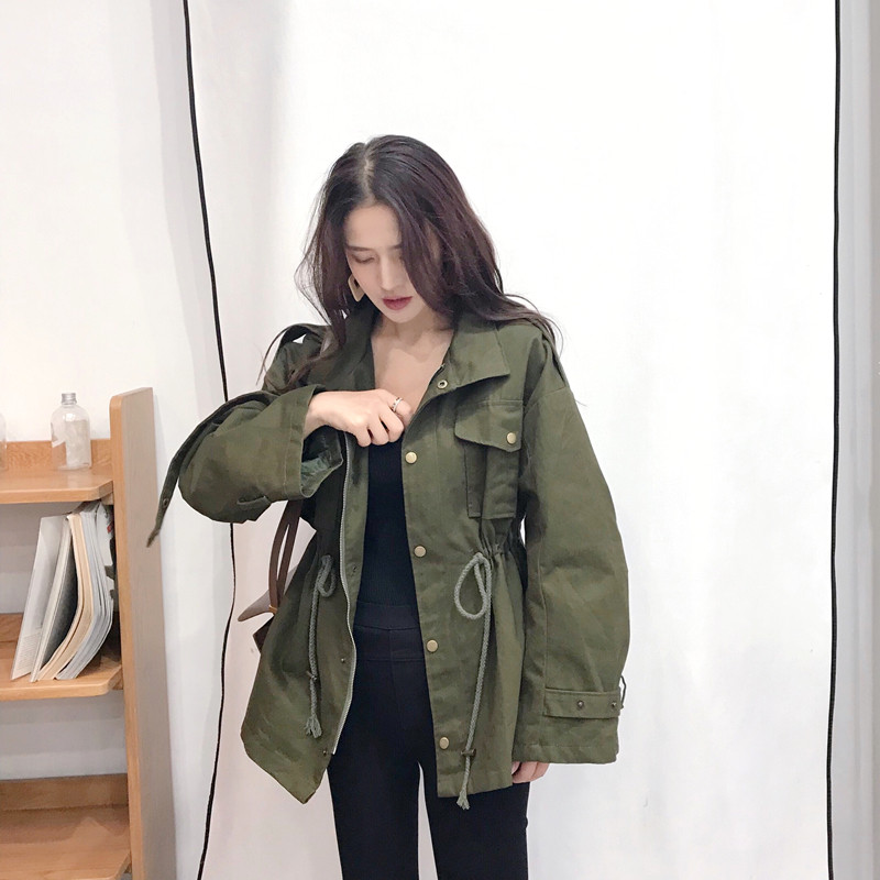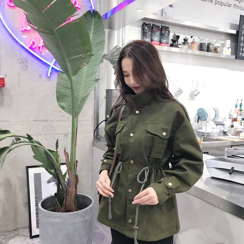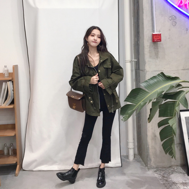 / 韓國復古港風外套冬季女2018新款百搭工裝寬松休閑口袋收腰風衣女