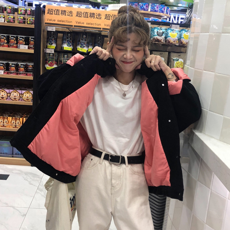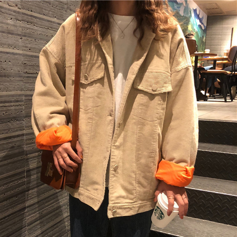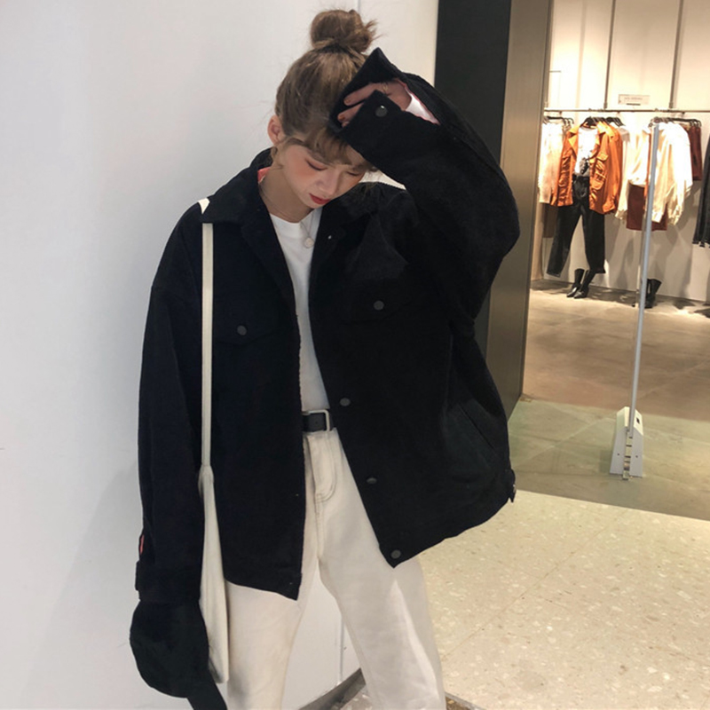 原宿風燈芯絨外套女秋冬裝2018新款韓版學生寬松翻領長袖開衫上衣