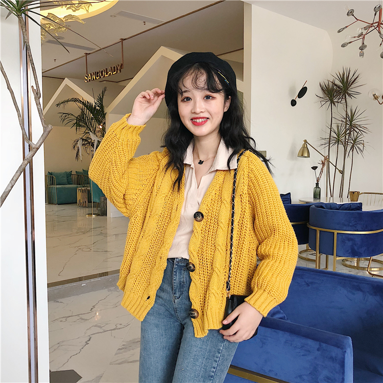 秋冬女裝韓版BF風寬松慵懶風短款鏤空網紅長袖毛衣針織衫開衫外套