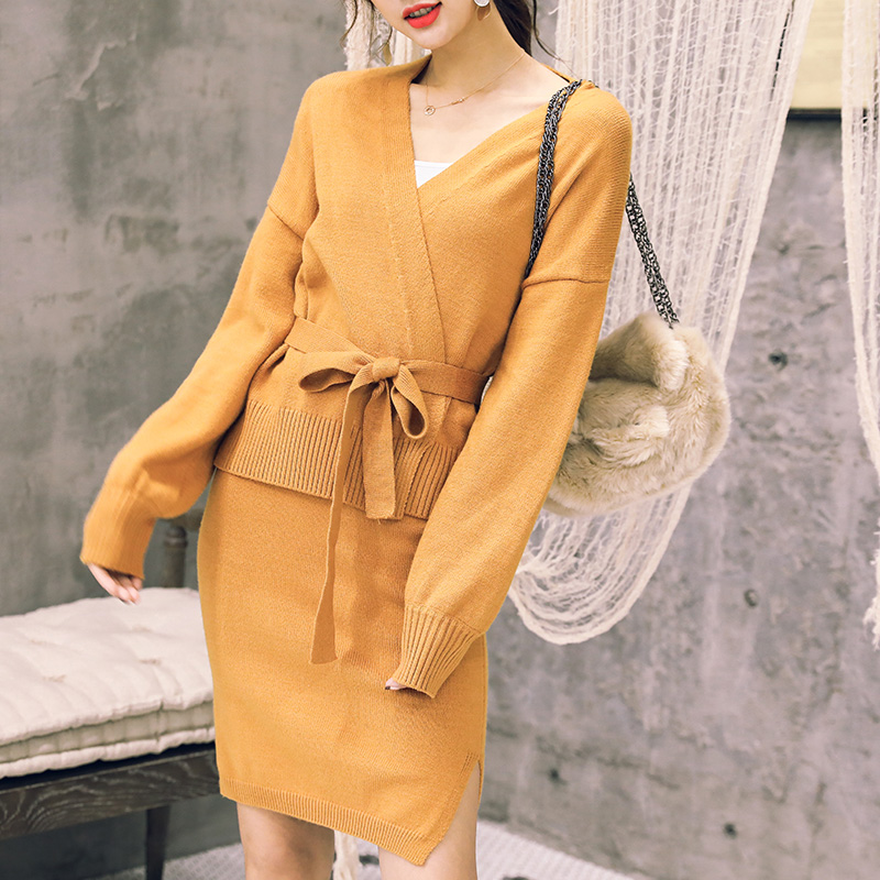 早秋女時尚兩件套2018新款秋冬針織套裙毛衣初秋秋裝氣質套裝裙子