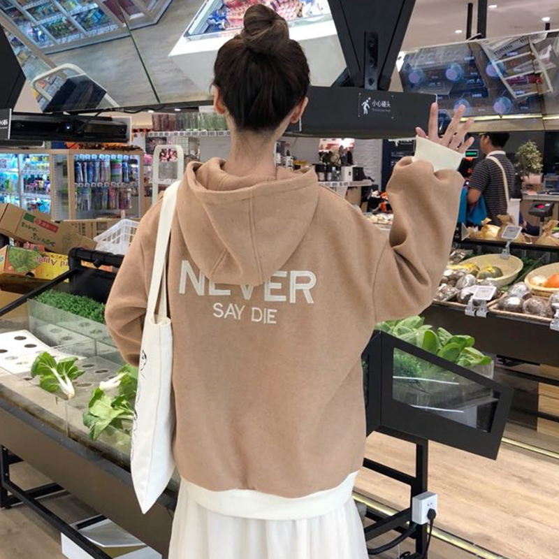 / 韓版寬松字母連帽衛衣2018新款女秋冬裝拼色毛呢外套怪味長袖上衣