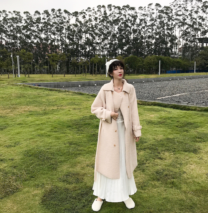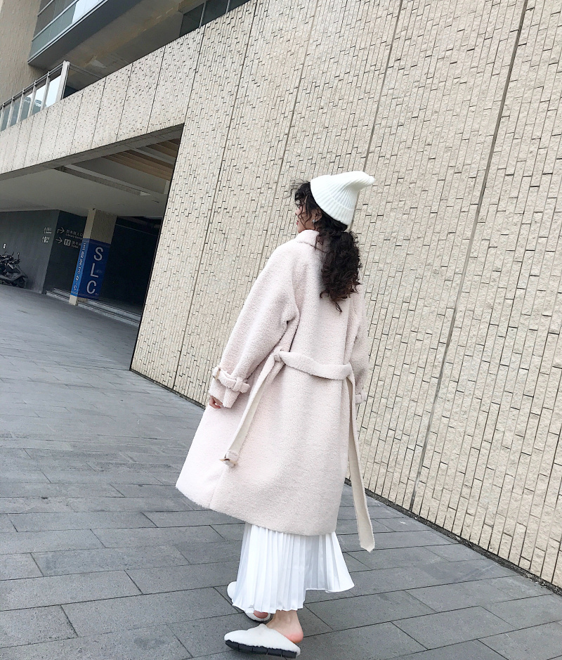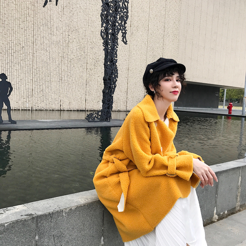 韓版chic羊羔毛外套女秋裝2018新款皮毛一體寬松慵懶polo領長外套