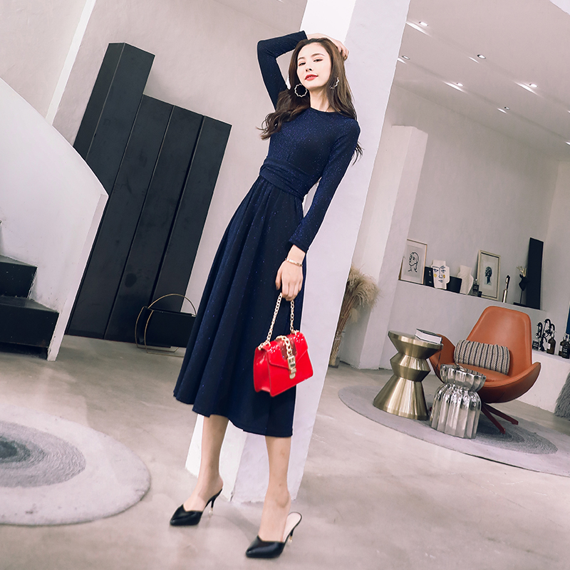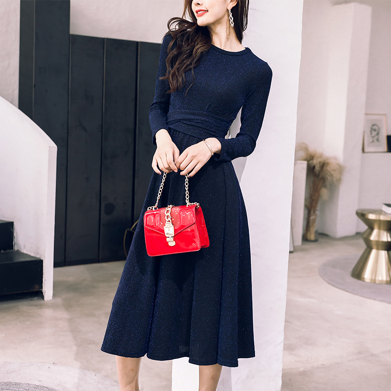 / 名媛氣質秋裝女2018新款打底裙收腰復古長裙長袖修身針織連衣裙潮